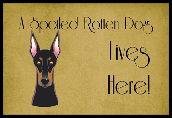 Caroline's Treasures BB1493MAT Doberman Spoiled Dog Lives Here Doormat 18x27 Front Door Mat Indoor Outdoor Rugs for Entryway, Non Slip Washable Low Pile, 18H X 27W
