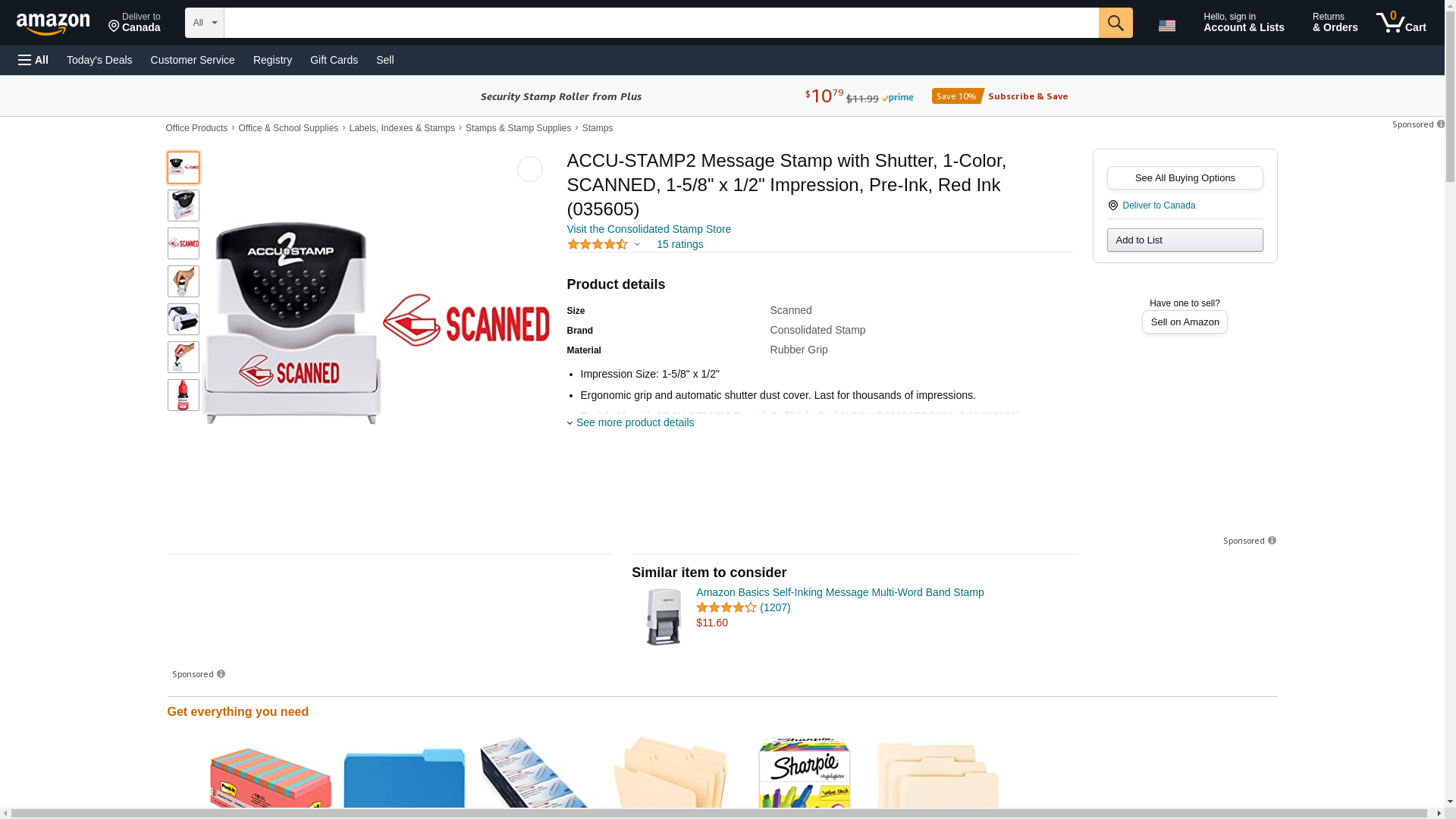 Accu-Stamp 2 Pre-Inked Stamp, SCANNED, Red Ink (COS035605) | Quill.com