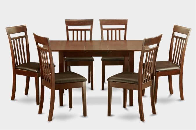East West Furniture NOCA7-MAH-LC Norfolk 7PC Set with table featured 12 in Butterfly Leaf and 6 Faux Leather Seat chairs