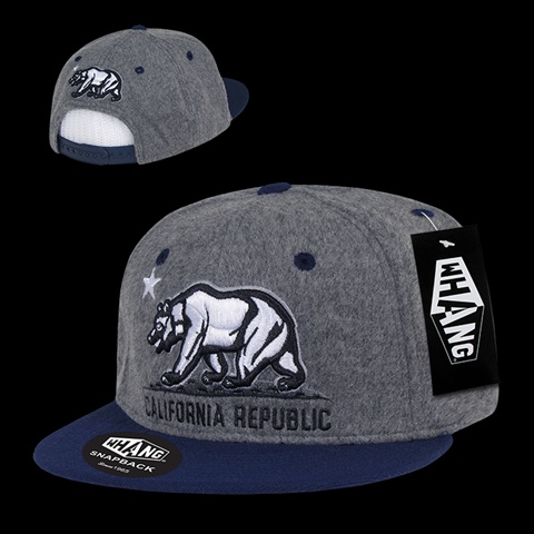 WHANG California Republic Melton Crown Snapback, Ash/Navy