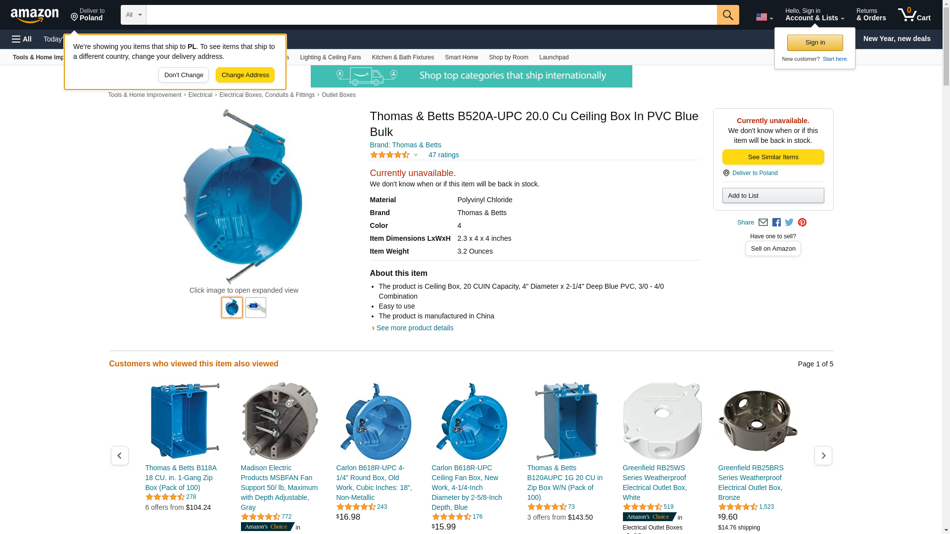 Thomas & Betts B520A-UPC 20.0 Cu Ceiling Box In PVC Blue Bulk