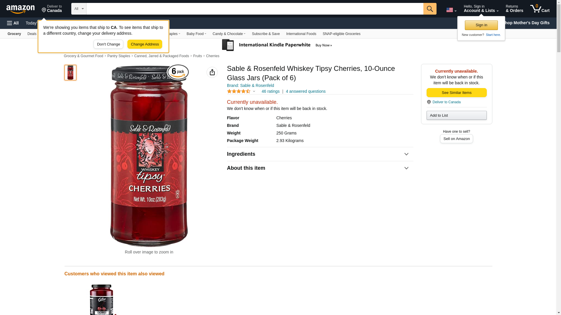 Sable and Rosenfeld Tipsy Whiskey Cherries, 10 Ounce -- 6 per case