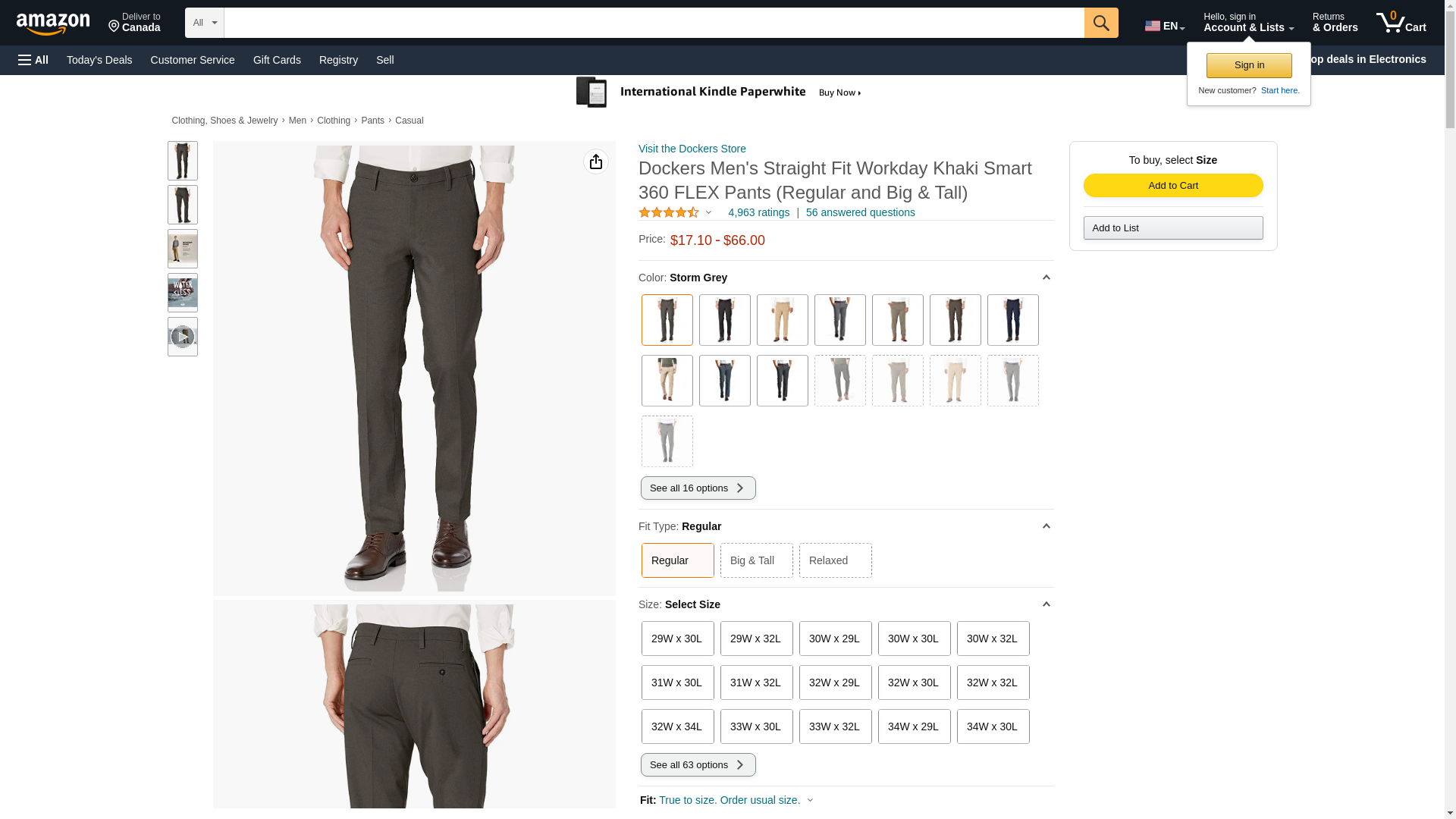 Dockers Men's Straight Fit Workday Khaki Smart 360 Flex Pants (Regular and Big & Tall), Storm Grey, 34W x 29L