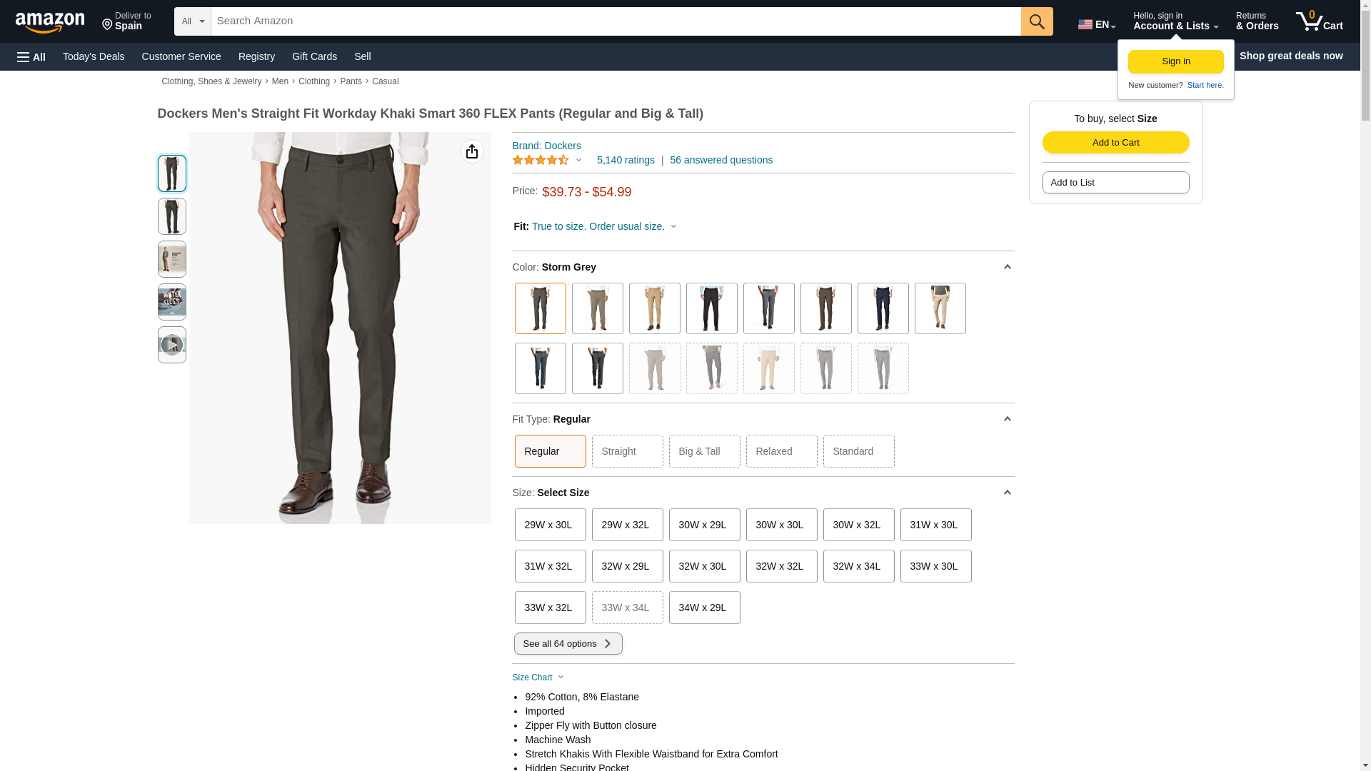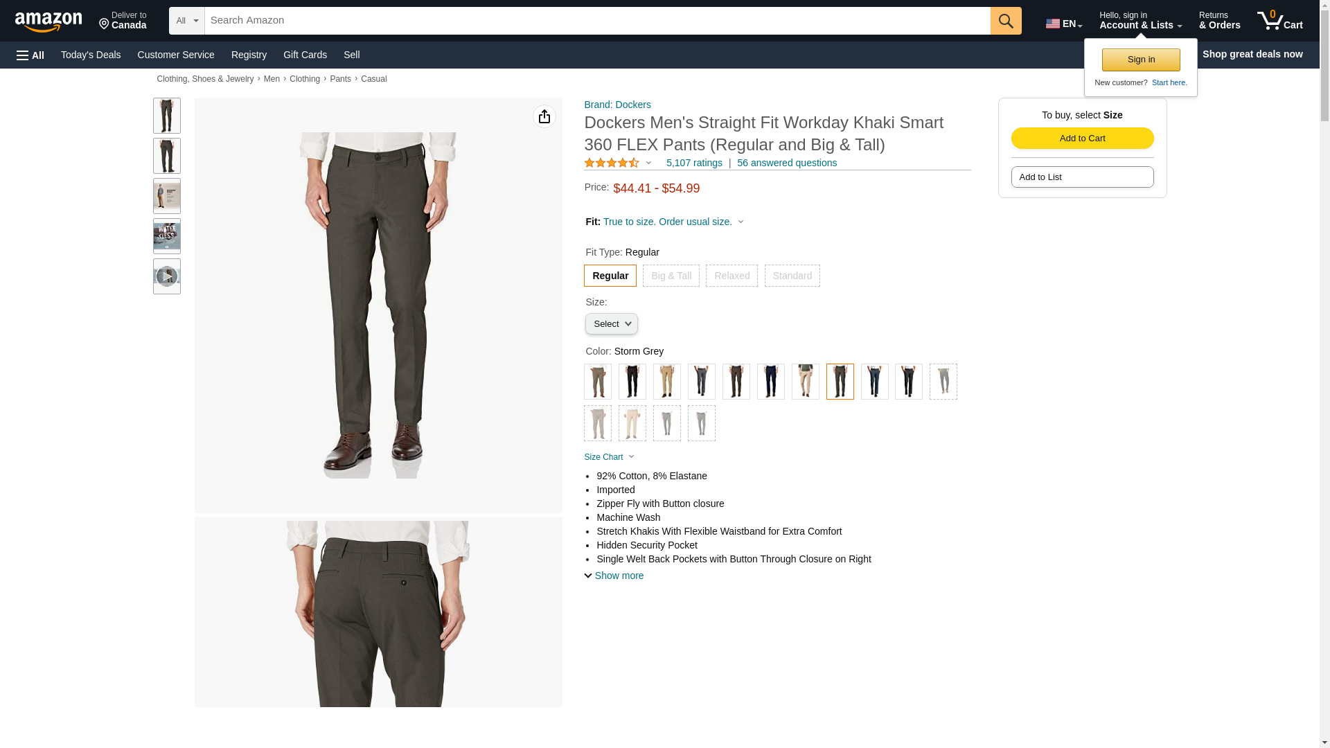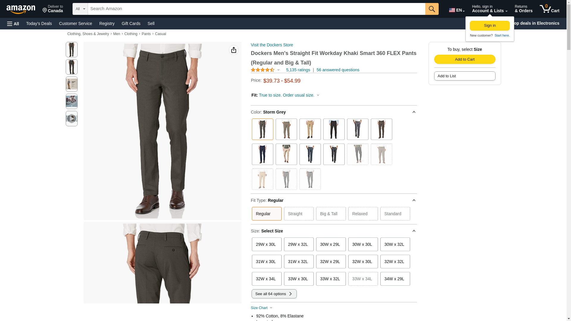 Dockers Men's Straight Fit Workday Khaki Smart 360 Flex Pants (Regular and Big & Tall), Storm Grey, 36W x 34L