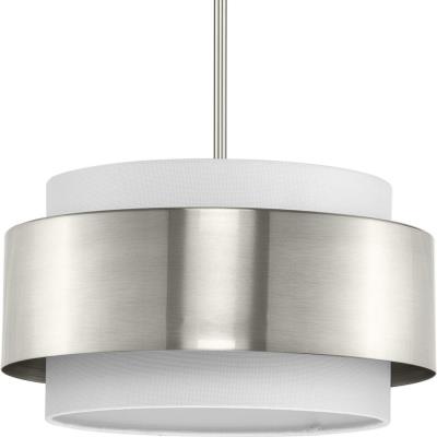 Progress Lighting Silva Collection Three-Light Brushed Nickel White Linen Shade Pendant (P500399-009)
