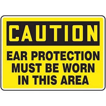 Accuform Manufacturing Inc MPPEC58BVA Features: -Price Is For One Each -Minimum Order Of 1. -Accuform Signs Aluminum (VA) Value Signs have the strength of metal, yet doesnt rust. Aluminum has superior abrasion and chemical resistance for indoor and outdoor environments..-PROTECTION MUST BE WORN IN.-Printed image on rigid .040" aluminum sheet Protected by 2-mil high-gloss UV polyester over-laminate film Service temperature range: -20°F to 140°F Withstands splashes and washdowns Endures outdoor environmental conditions Rounded corners and 3/16" mounting holes. -UNSPC CODE: 55121700. -Color : Yellow Black. -Safety Signs Safety Signs, workplace safety, safety sign, caution sign, warning sign, danger sign, area protection,safety sign.-SIGN 7X10 ALUM CAUTION EAR.
