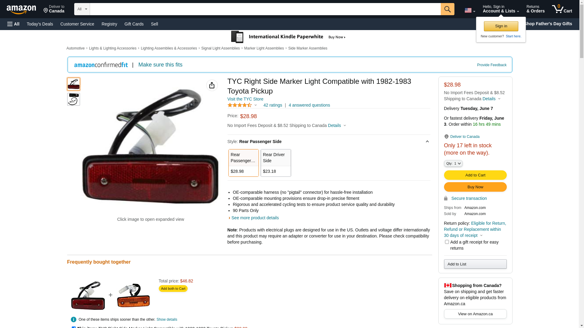 TYC 18-1244-90 Toyota Pickup Replacement Rear Passenger Side Marker