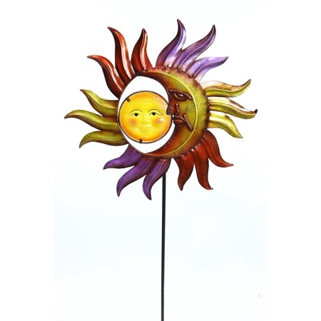 20"L x 1"W x 49"H Made of glass and metal Garden Stake Glass sun and metal moon Warm and cool color blend