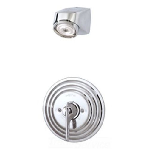 The C-96-1-151-X Symmons Temptrol Commercial Shower System comes in a enticing Chrome finish. This pressure-balancing mixing valve features a lever handle, integral service stops, adjustable stop screw to limit handle turn, universal shower head with tamper-proof spray pattern adjustment, tamper-proof angular direction of spray adjustment, and all mounting fasteners for valve and head are vandal resistant recessed hex socket type. It comes with the rough-in valve included. Symmons' Temptrol series gives you a radiant transition from traditional style to modern convenience, allowing this collection compliment any bath decor.