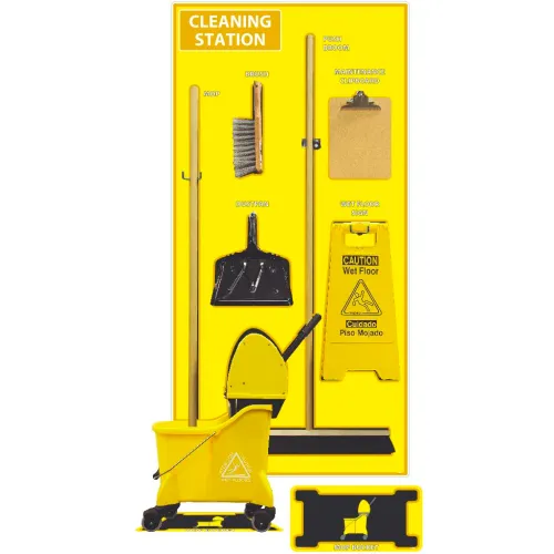 National Marker Cleaning Station Shadow Board, Combo Kit, Yellow/Black, 72 X 36, Acp, Composite