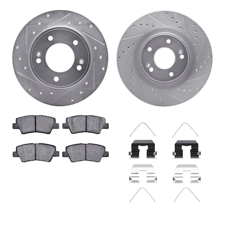 Dynamic Friction Company Rear Brake Rotors-Drilled and Slotted-Silver with 3000 Series Ceramic Brake Pads includes Hardware 7312-03080