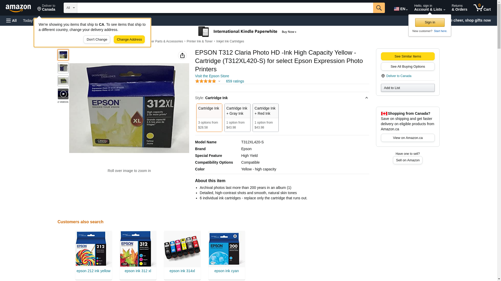EPSON 312 Claria Photo HD Ink High Capacity Yellow Cartridge (T312XL420-S) Works with Expression Photo XP-8500, XP-8600, XP-8700, XP-15000