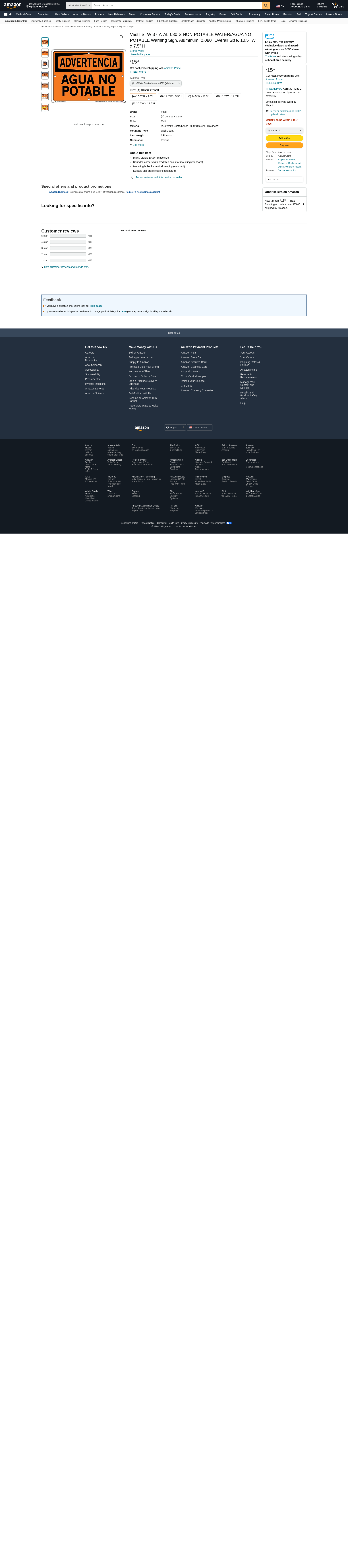Vestil SI-W-37-A-AL-080-S NON-POTABLE WATER/AGUA NO POTABLE Warning Sign, Aluminum, 0.080" Overall Size, 10.5" W x 7.5" H
