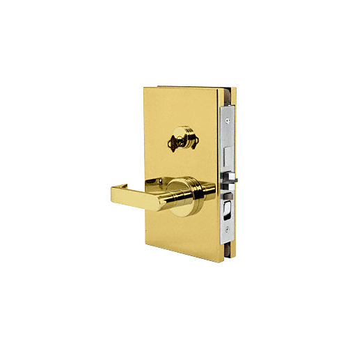 CRL ALUM-DL611LEPB-VCP-1 Polished Brass 6" x 10" LHR Center Lock With Deadlatch in Entrance Lock Function