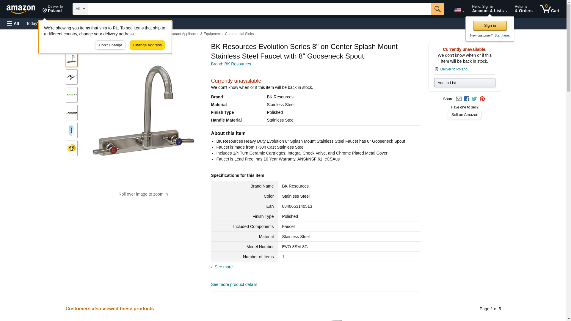 - Evolution Series Heavy Duty 8" wall / splash mount faucet with 8" gooseneck spout designed for commercial kitchens