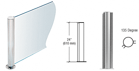 C.R. LAURENCE PP0824ABS CRL Brushed Stainless 24" Round PP08 Elegant Series Counter/Partition 135 Degree Post