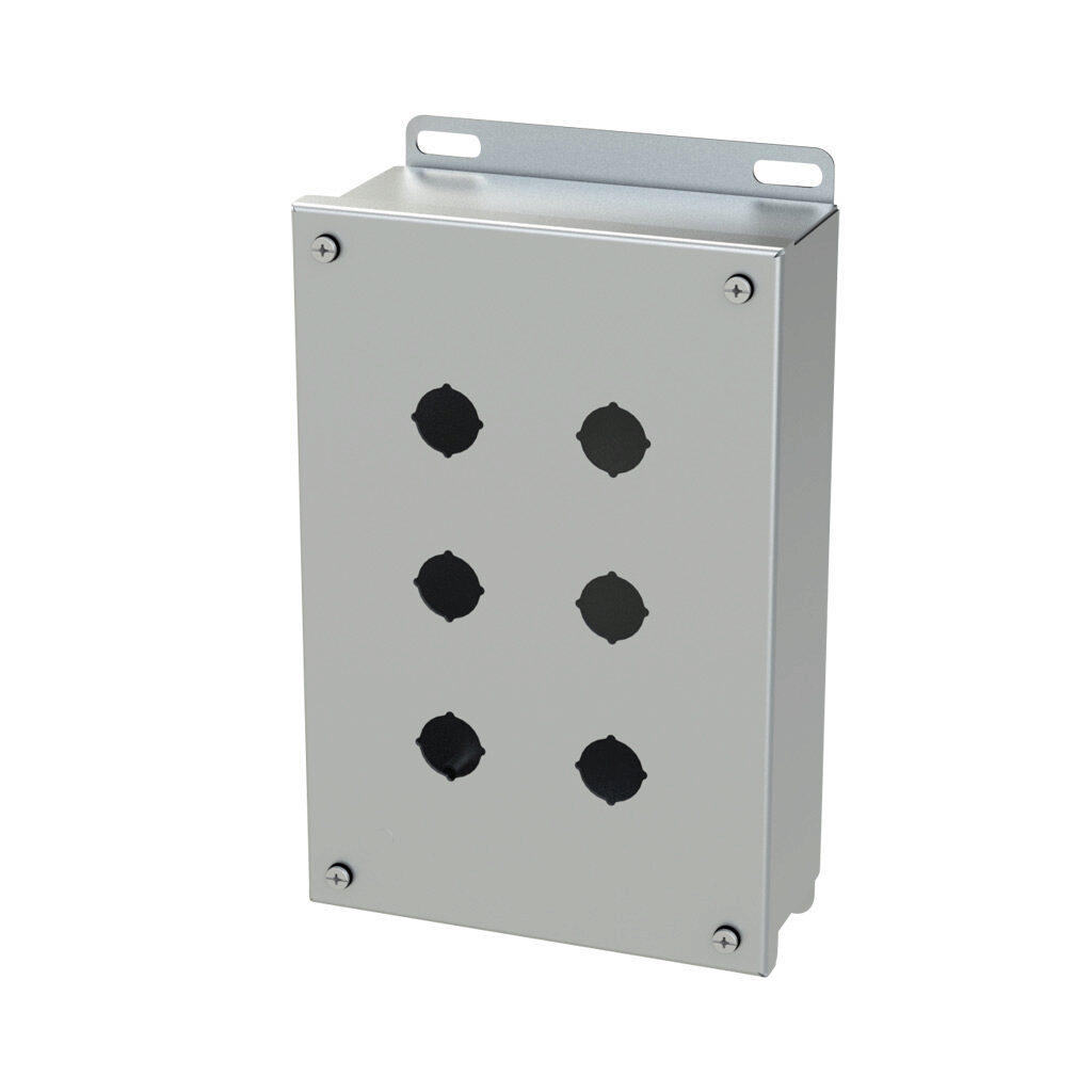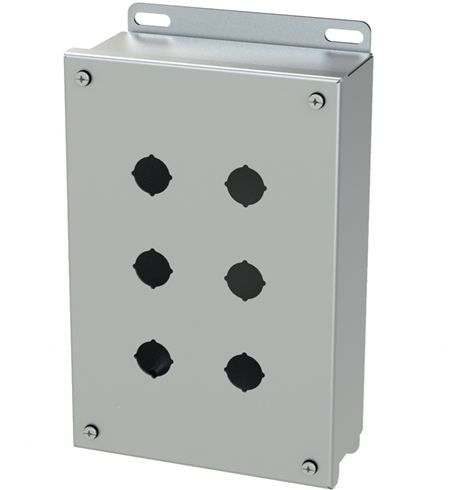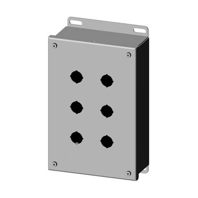 SCE-6PBSSI | 10x6x3" 304 Stainless Steel Push Button Electrical Enclosure with 6 Holes, 22.5 mm | Saginaw Control & Engineering