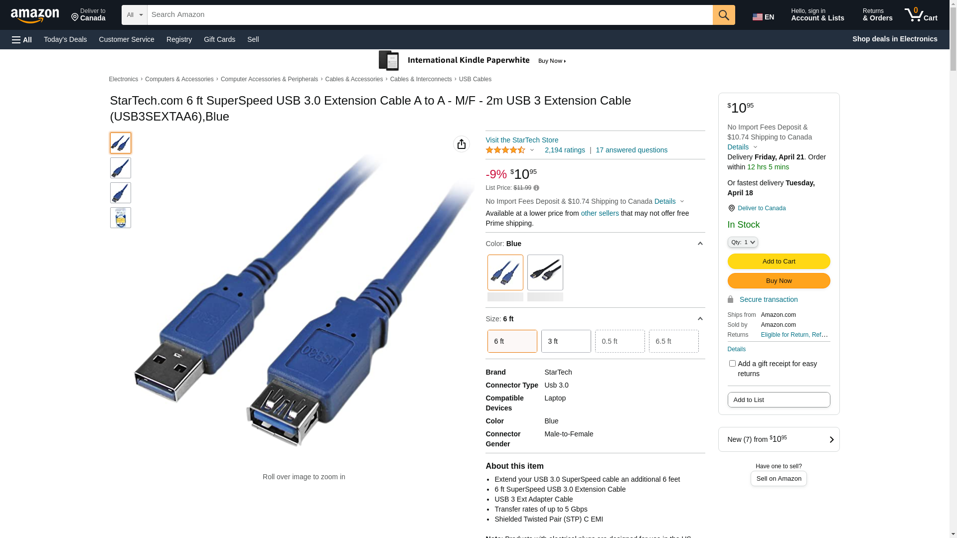 | Feature | Length: 6 feet| Color: Blue| Left Connector Gender: Male| Right Connector Gender: Female| Left Connector Type: 4 pin USB Type A| Right Connector Type: 4 pin USB Type A| Service & Support Type: Lifetime Warranty| RoHS: Y |