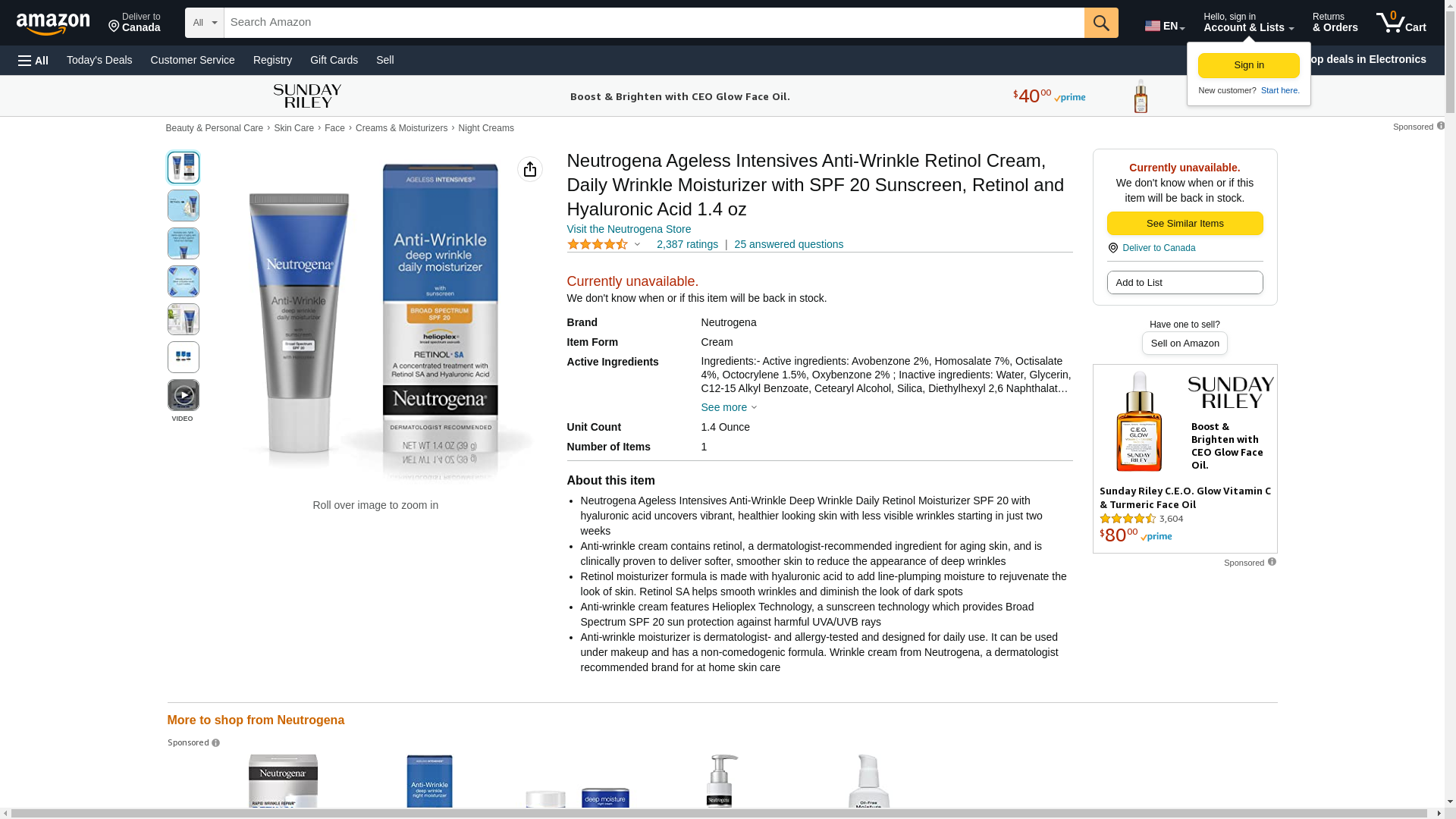 - Neutrogena Ageless Intensives Anti-Wrinkle Deep Wrinkle Daily Retinol Moisturizer SPF 20 with hyaluronic acid uncovers vibrant, healthier looking skin with less visible wrinkles starting in just two weeks