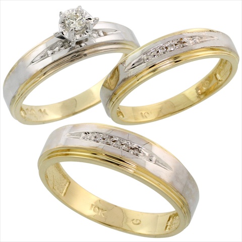 World Jewels 10K Yellow Gold Diamond Trio Wedding Ring Set, Size 10