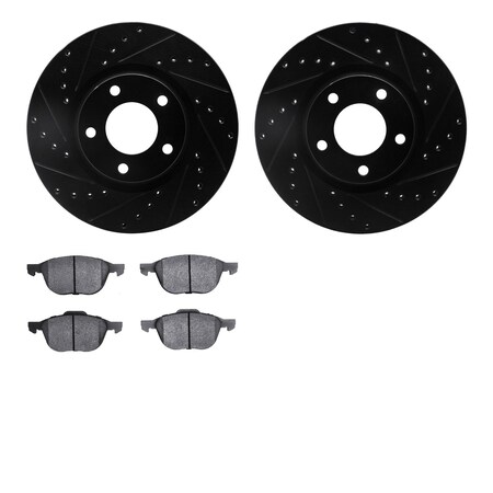 Dynamic Friction Company Front Brake Rotors-Drilled and Slotted-Black with 5000 Euro Ceramic Brake Pads 8602-80006