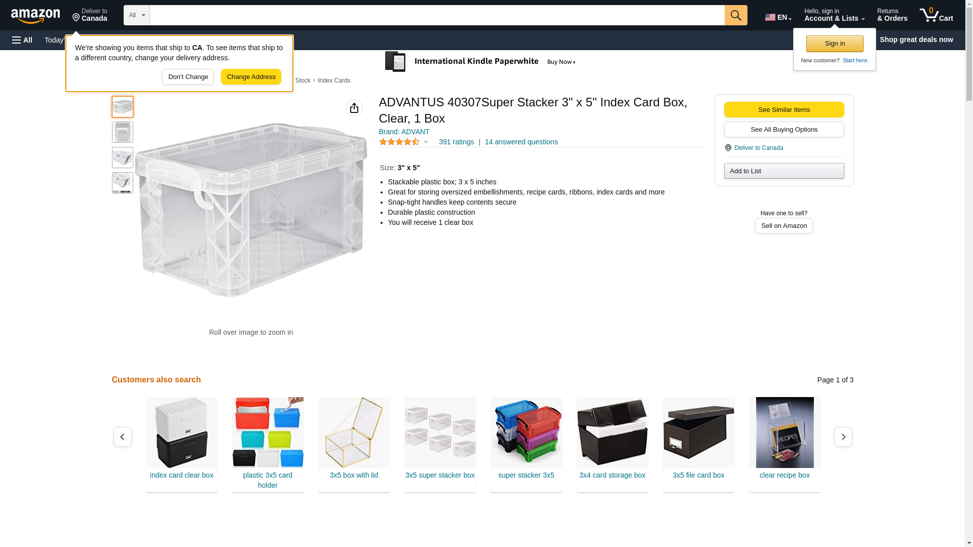 ADVANT 40307Super Stacker 3" x 5" Index Card Box, Clear