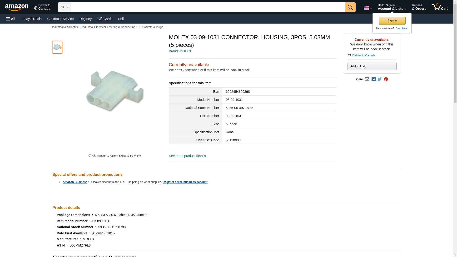 | Feature | This listing is for 2 pcs Molex Part Number 03-09-1031 |