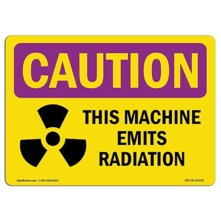 OSHA CAUTION RADIATION Sign, This Machine Emits Radiation, 14in X 10in Decal