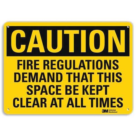 Smartsign U4-1308-RA_14X10"CAUTION FIRE REGULATIONS DEMAND THAT THIS SPACE BE KEPT CLEAR AT ALL TIMES" Reflective Recycled Aluminum Sign, 14" x 10"