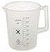 - Round, tapered beaker with ergonomic handle and printed graduations (mL) for general laboratory use