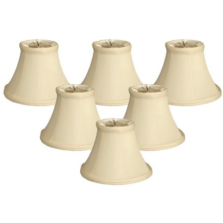 RDES2070 <br /> <b>Features</b> <br /> <ul> <li>Set includes: 6 lamp shades</li> <li>Hand tailored silk-type shantung fabric material</li> <li>Premium softback lining</li> <li>Clip-on fitter for candelabra bulb base</li> <li>Product Type: Candelabra shade</li> <li>Style (Old): Traditional</li> <li>Shape: Bell</li> <li>Primary Material: Silk/Shantung</li> <li>Attachment Type: Clip on</li> <li>Theme: Solid</li> </ul> <br /> <b>Dimensions</b> <br /> <ul> <li>Heavy grade 1.5mm rust resistant metal frame</li> <li>Overall Height - Top to Bottom: 4.5"</li> <li>Overall Width - Side to Side: 6"</li> <li>Overall Depth - Front to Back: 6"</li> <li>Overall Product Weight: 0.4 lbs</li> <li>Top Width - Side to Side: 3"</li> <li>Base Width - Side to Side: 6"</li> </ul>