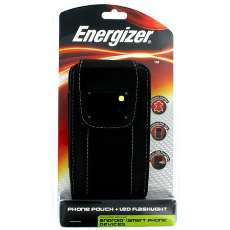 <br /> <b>Energizer Leather Smartphone Case with LED Light:</b> <ul> <li>Genuine leather case with built-in LED flashlight</li> <li>For use with most smartphones</li> <li>Vertical orientation</li> <li>360-degree rotating belt clip</li> </ul>