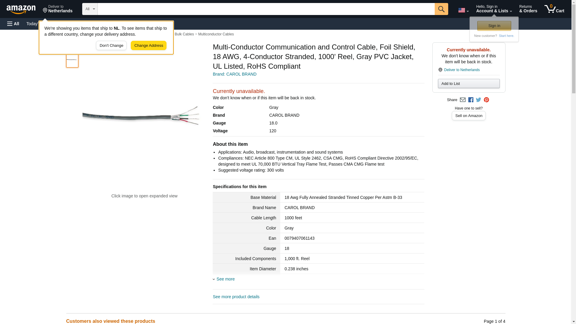 | Manufacturer | CAROL CABLE/GENERAL CABLE |
