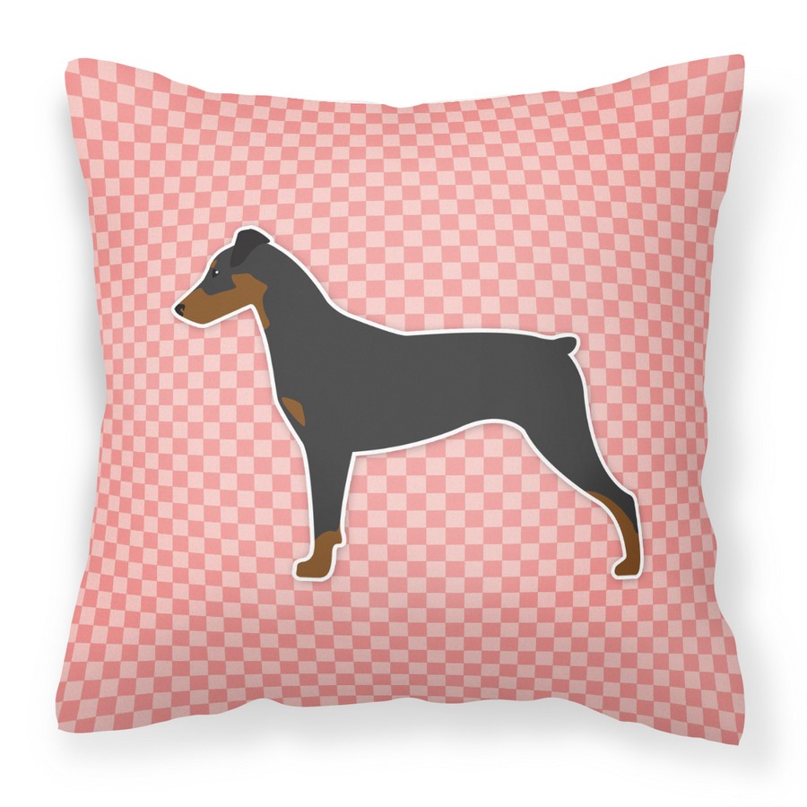 Carolines Treasures BB3613PW1414 German Pinscher Checkerboard Pink Fabric Decorative Pillow