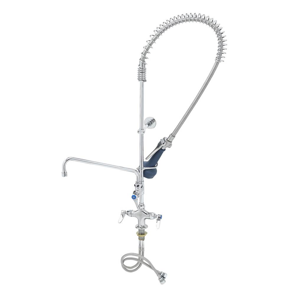 T&S Brass B-2338-08C Pre-Rinse Units, Includes Overhead Spring, Add-On Faucet, Single Hole Base, Wall Bracket
