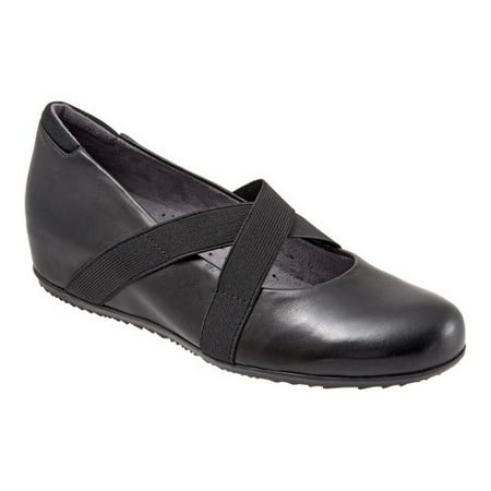 With crisscross stretch straps, the SoftWalk Waverly Hidden Wedge is the perfect walking shoe for casual days. Waverly boasts the look of a ballerina but gives you a lift with its hidden wedge. The criss cross straps compliment the look while providing a comfortable fit. The soft lined footbed has great arch support and is removable for people who prefer to use orthotics. Antimicrobial brushed sueded microfiber upper lining. Soft antimicrobial microfiber footbed lining. Available in up to size 12 - stock dependent. 1inch heel height. Padded collar. Removable cushioned footbed with arch support on top of a lined and cushioned insole. No shank. Leather upper. Available in 3 widths (Narrow, Medium, Wide) - stock dependent. Elastic goring. Flexible, textured and cushioning rubberized sole.