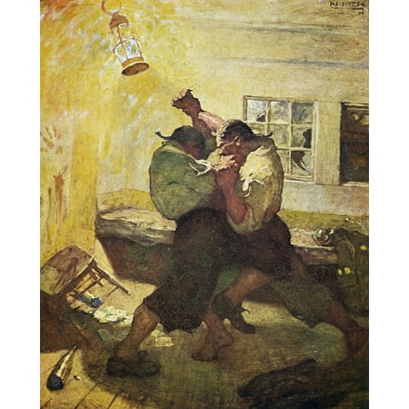 Stretched Canvas Art - Treasure Island, 1911. /Nthe Fight In The Cabin. Illustration, 1911, By N.C. Wyeth For Robert Louis Stevenson'S 'Treasure Island.' - Large 24 x 36 inch Wall Art Decor Size.