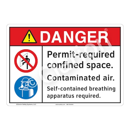 <p><strong>Word Message: </strong><br />Permit-required confined space. Contaminated air. Self-contained breathing apparatus required. </p><p><strong>Description: </strong><br />Clarion Safety Systems brings you high quality danger permit required safety signs (ITEM# F1209-) which are produced on premium plastic material and are expertly designed to meet your PPE reinforcement sign needs. </p><p><strong>Material Information:</strong></p> <ul> <li><strong>Material</strong>: (Z1) Outdoor Flexible Polyester</li> <li><strong>Base Materials</strong>: 3M .002 premium white polyester</li> <li><strong>Overlaminate</strong>: 3M .003 ultra-clear weatherable UV resistant</li> <li><strong>Mounting Option</strong>: 3M Premium Structured Acrylic</li> <li><strong>Application</strong>: Indoor/Outdoor</li> <li><strong>MaxTemp</strong> (F): 175</li> <li><strong>MinTemp</strong> (F): -40</li> <li><strong>Chemical Resistance</strong>: Excellent</li> <li><strong>UV Resistance</strong>: Excellent </li> <li><strong>Outdoor durability</strong>: Excellent</li> <li><strong>Storage Stability</strong>: Stable. Optimum storage conditions: 72 F @ 50% relative humidity</li> <li><strong>Expected Life Indoor</strong>: Long term</li> <li><strong>Expected Life Outdoor</strong>: 5 years plus (expected outdoor life may vary due to climatic conditions)</li> <li><strong>RoHS</strong>: Yes</li> <li><strong>CRoHS</strong>: Yes</li> <li><strong>REACH</strong>: Yes</li> </ul>
