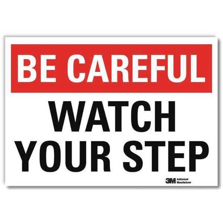 SmartSign by Lyle U7-1054-RD_10X7 "BE CAREFUL WATCH YOUR STEP" Reflective Self-Adhesive Decal, 10" x 7"