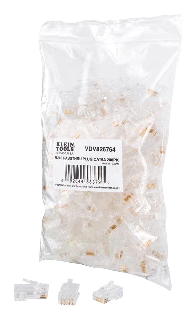 Klein Tools VDV826-764 Modular Data Plug for CAT6A and Larger Diameter CAT6 Indoor or Outdoor Ethernet Cable, 200-Pack