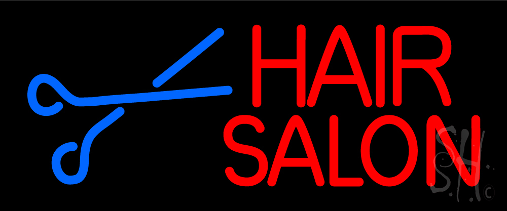 The Sign Store N105-15978 10 x 24 in. Red Hair Salon with Scissor Neon Sign - Blue & Red