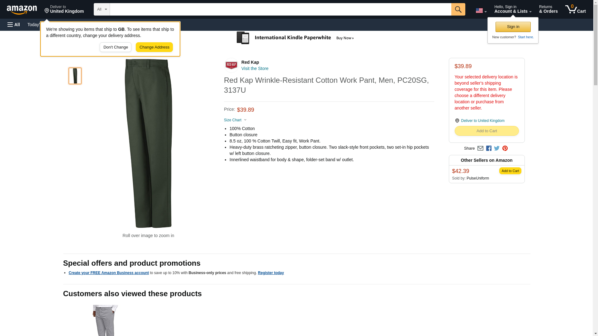 Red Kap Wrinkle-Resistant Cotton Work Pant, Men, PC20SG, 3137U PC20SG-31-37U