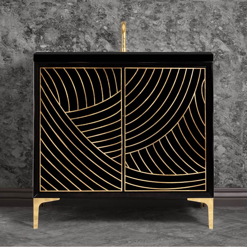Linkasink - VAN36B-001PB - Lateen 36'' Wide Black Vanity with Hand Applied Metal Leaf and Polished Brass Hardware, 36'' x 22'' x 33.5'' (without vanity top)