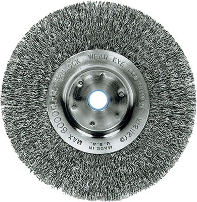 Weiler Narrow Face Crimped Wire Wheel, 6 in D x 3/4 in W, .014 in Steel Wire, 6,000 rpm
