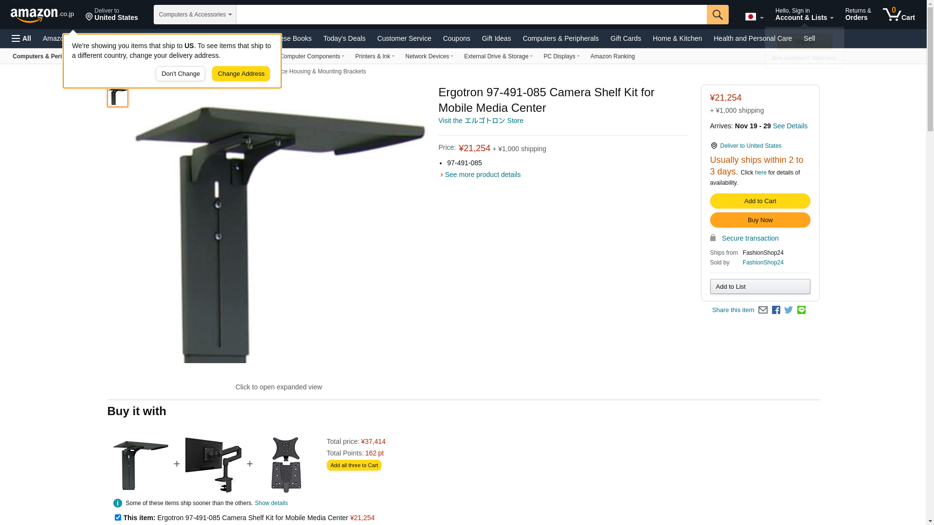 <div>General Information</div><table><tr><td><div>Manufacturer/Supplier:</div></td><td><span>Ergotron, Inc</span></td></tr><tr><td><div>Manufacturer Part Number:</div></td><td><span>97-491-085</span></td></tr><tr><td><div>Manufacturer Website Address:</div></td><td><span></span></td></tr><tr><td><div>Brand Name:</div></td><td><span>Ergotron</span></td></tr><tr><td><div>Product Model:</div></td><td><span>97-491-085</span></td></tr><tr><td><div>Product Name:</div></td><td><span>97-491-085 MMC Camera Shelf Kit</span></td></tr><tr><td><div>Product Type:</div></td><td><span>Mounting Shelf</span></td></tr></table><div>Product Information</div><table><tr><td><div>Device Supported:</div></td><td><span>Camera</span></td></tr><tr><td><div>Maximum Load Capacity:</div></td><td><span>5.95 lb</span></td></tr></table><div>Physical Characteristics</div><table><tr><td><div>Color:</div></td><td><span>Black</span></td></tr></table><div>Shipping Information</div><table><tr><td><div>Shipping Dimensions :</div></td><td><span>2.3 Height x 8.0 Width x 19.5 Depth</span></td></tr><tr><td><div>Shipping Weight :</div></td><td><span>4.65 lb</span></td></tr></table><div>Miscellaneous</div><table><tr><td><div>Additional Information:</div></td><td><span><li>Speedy assembly and installation </li><li>Turn any space into a video conference center </li><li>Application: Neo-Flex Mobile Media Center Carts</li></span></td></tr><tr><td><div>Compatibility:</div></td><td><span>Videoconferencing Camera</span></td></tr></table><br><div></div>