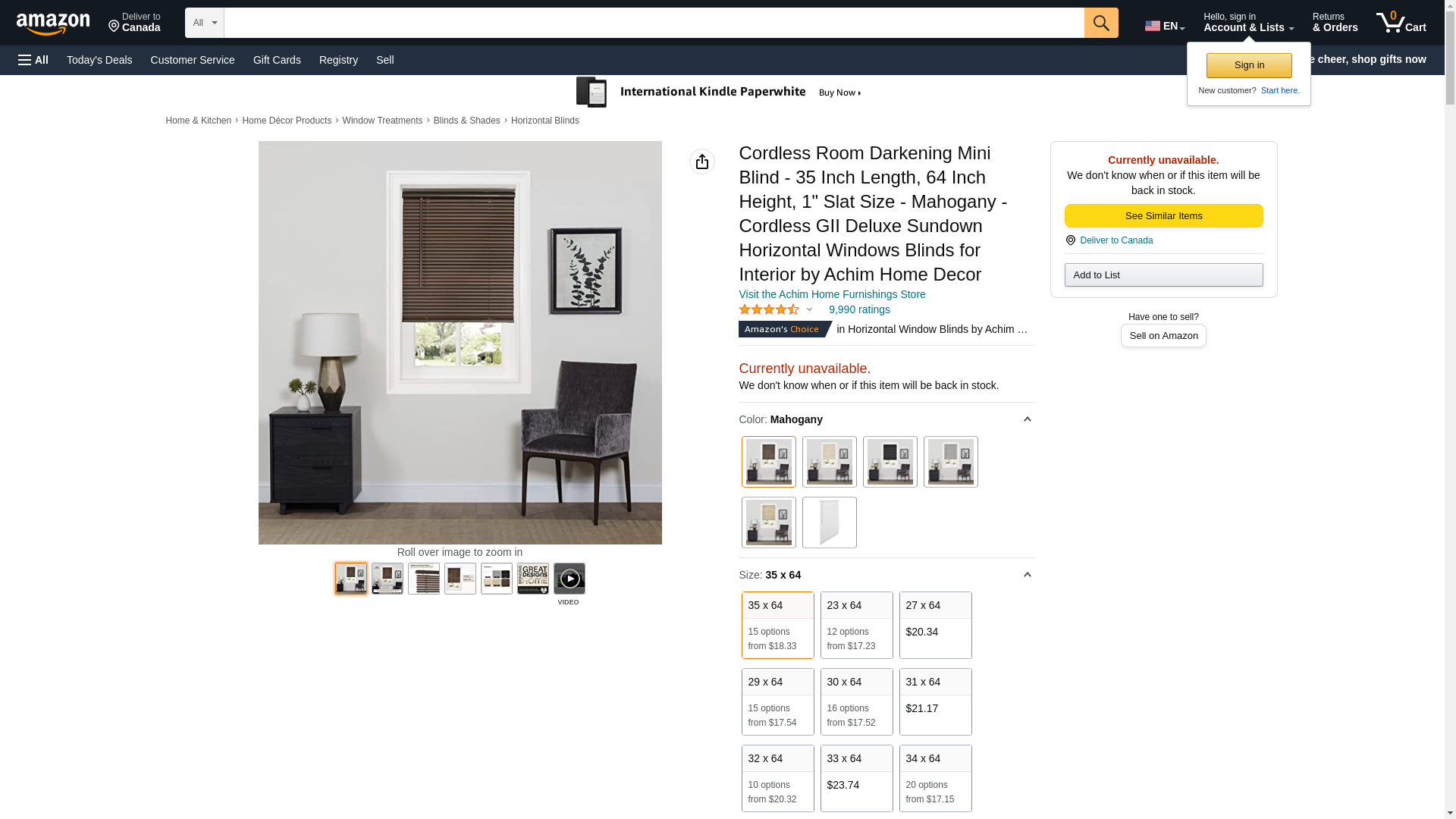 Cordless Room Darkening Mini Blind - 35 Inch Width, 64 Inch Length, 1" Slat Size - Mahogany - Cordless GII Deluxe Sundown Horizontal Windows Blinds for Interior by Achim Home Decor