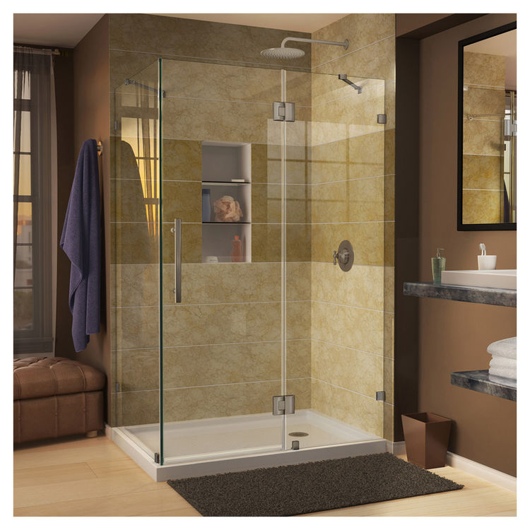 DreamLine QuatraLux 34 5/16" x 34 5/16" Frameless Hinged Shower Enclosure, Clear 3/8" Glass Shower, Brushed Nickel Finish Hardware