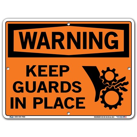 Vestil SI-W-46-B-AL-063 Keep Guards in Place Warning Sign, Aluminum, 0.063" Overall Size, 12.5" W x 9.5" H