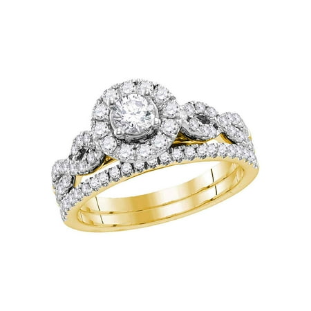 14kt Yellow Gold Womens Diamond Round EGL Bridal Wedding Engagement Ring Band Set 1.00 Cttw