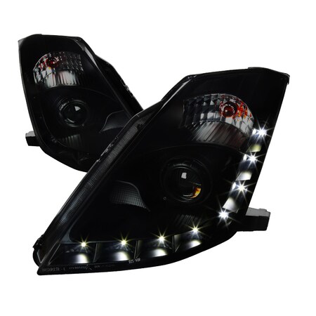 Spec-D Projector Headlights w/ Bright White LED Light Strips (Black Housing/Smoke Lens) Nissan 350Z 2006-2009 | LHP-350Z06SM-RS
